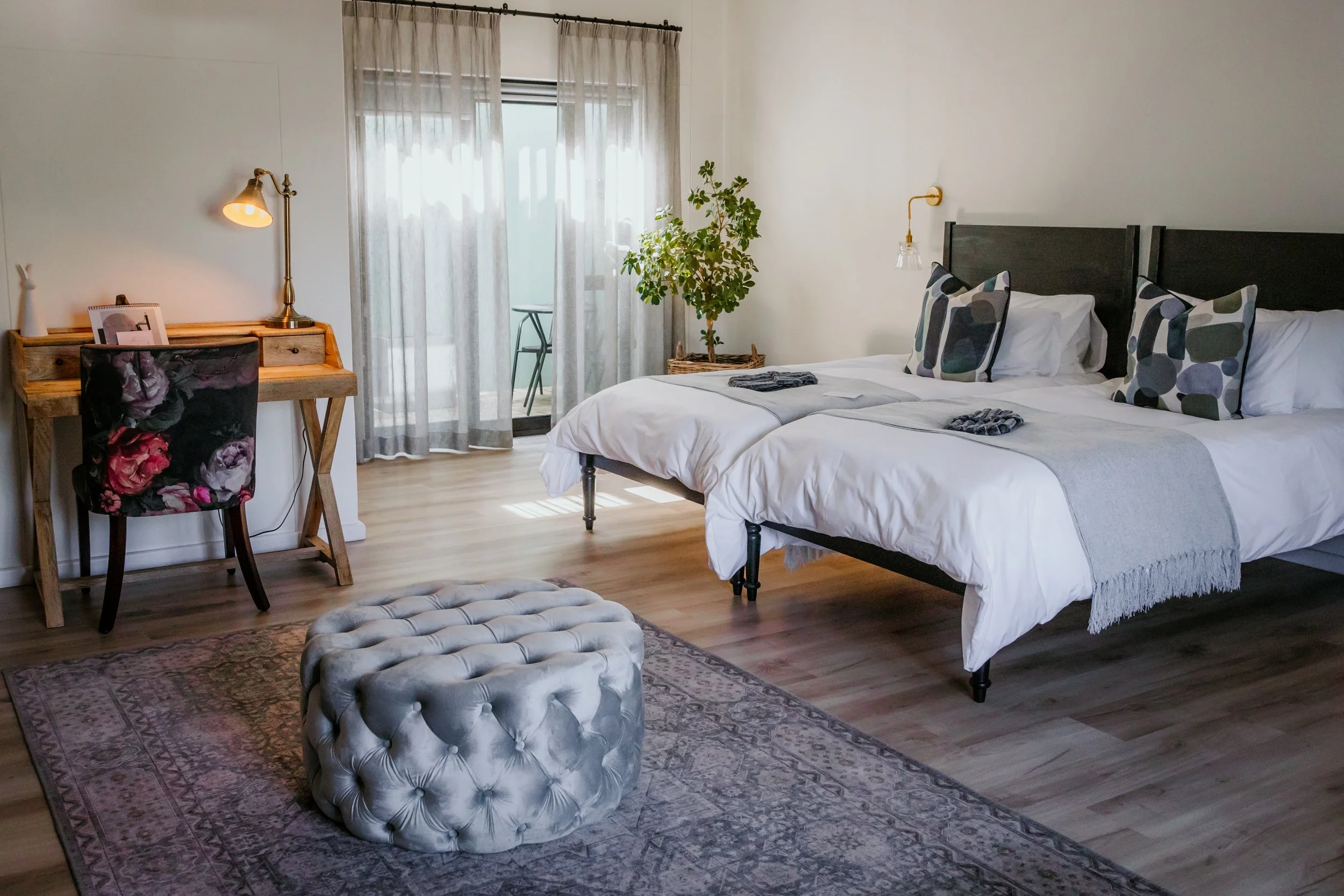 The Regal Suite at Fancy Fritz bed and breakfast in Swakopmund is a top-notch haven for guests seeking comfort and luxury. This spacious suite boasts twin beds decked out in comfy linens for a great night's sleep. Step outside to your own private patio—perfect for enjoying a quiet moment or a drink. This exclusive retreat within Fancy Fritz invites you to unwind and savor every moment in opulent seclusion.